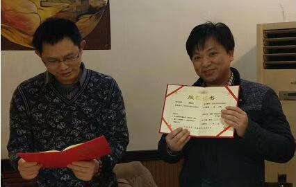 简单而隆重的年度总结暨表彰会,员工喜领股权证书、荣誉证书和奖金。