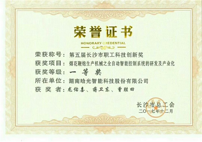 热烈祝贺U8(中国)智能的研发项目获长沙市科技创新一等奖,项目技术带头人龙佑喜先生获长沙市五一劳动者奖章。